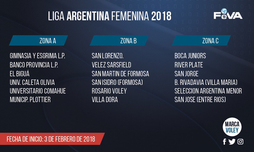 Este sábado, en las instalaciones de la Federación de Voleibol Argentino, se realizó la reunión de la Liga Femenina 2018. que se disputará desde los primeros días de febrero y donde quedaron definidas las tres zonas en las que fueron repartidos los 18 equipos participantes.