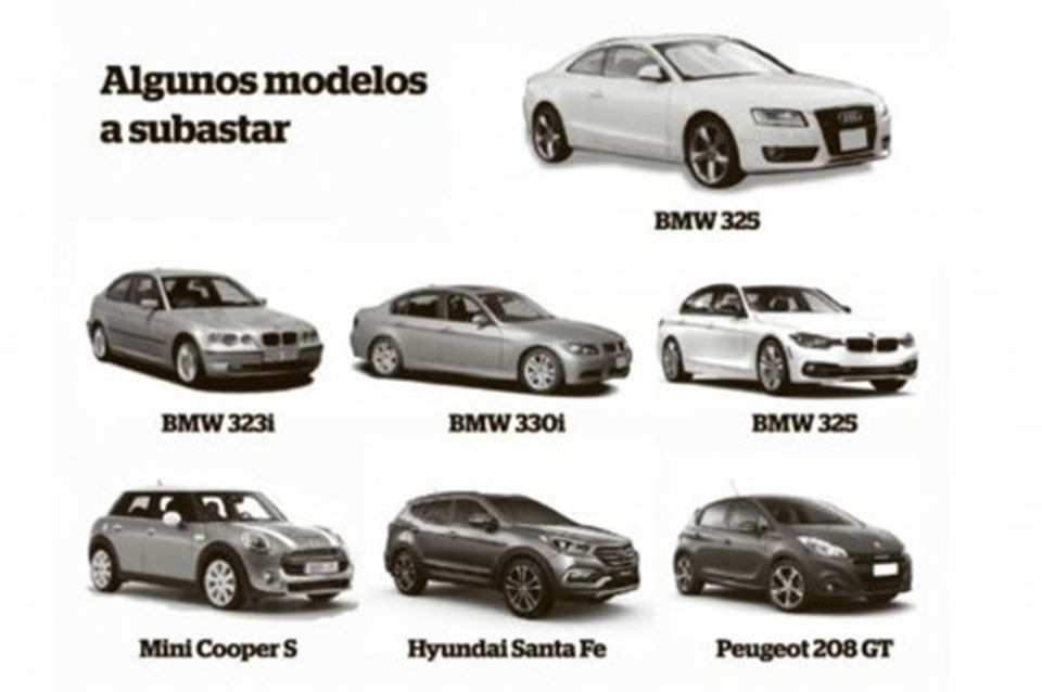 Entre los coches que se subastarán este mes figuran un Mini Cooper 2008, un BMW 3301, otro auto alemán 3231, otro BMW 120i y otro marca alemana versión 325i.