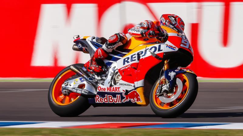 La segunda sesión de entrenamientos libres del Gran Premio Motul de la República Argentina de MotoGP™ se ha celebrado esta tarde en Termas de Río Hondo con Marc Márquez (Repsol Honda Team) logrando un tiempo de 1’41.579 que le situaba primero en la lista combinada de los mejores tiempos del viernes en la categoría reina.