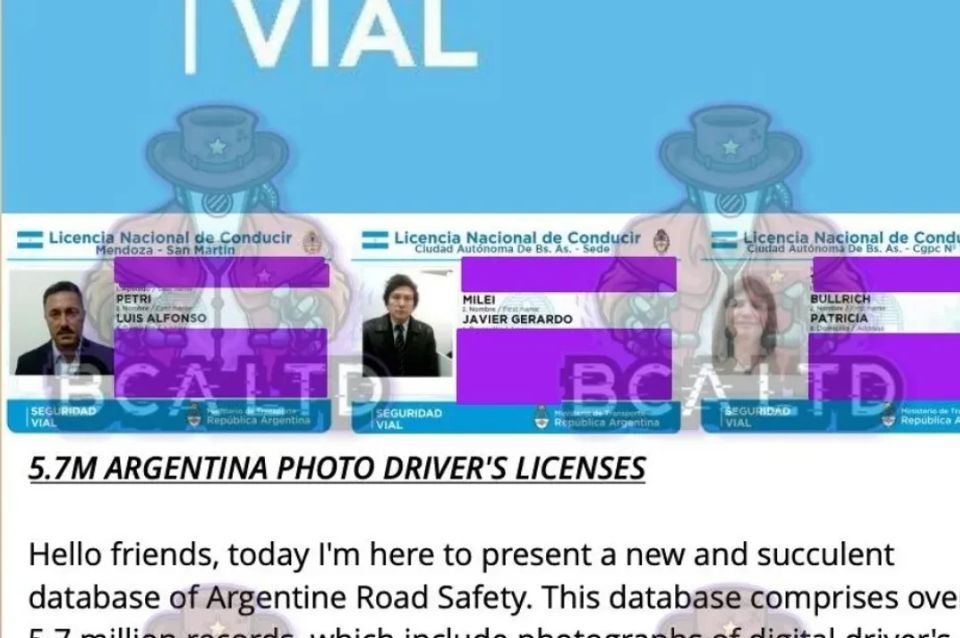 Un grupo de delincuentes informáticos puso a la venta los datos de más de 5 millones de carnets de conducir, incluido el del presidente Javier Milei.