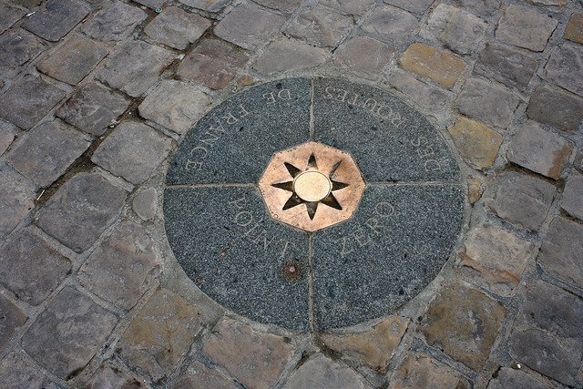 4. Punto Cero. Muchos desconocen que este lugar fue elegido para ser el ‘punto cero’ del Francia y de París.  Hay un medallón parecido a la Rosa de los Vientos que señala este punto.