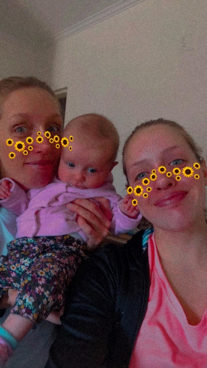 Antonela Bogarín, su mamá Cristina e hijo Bautista.
