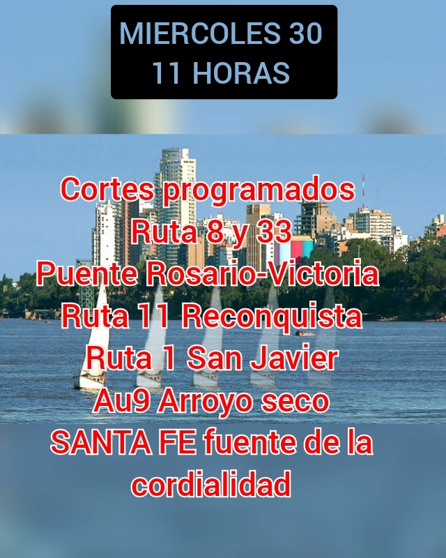También hay protestas en la Ruta 8 y 33, el puente Rosario-Victoria, Ruta 11 en Reconquista, Ruta 1 en San Javier, AU 9 en Arroyo Seco.