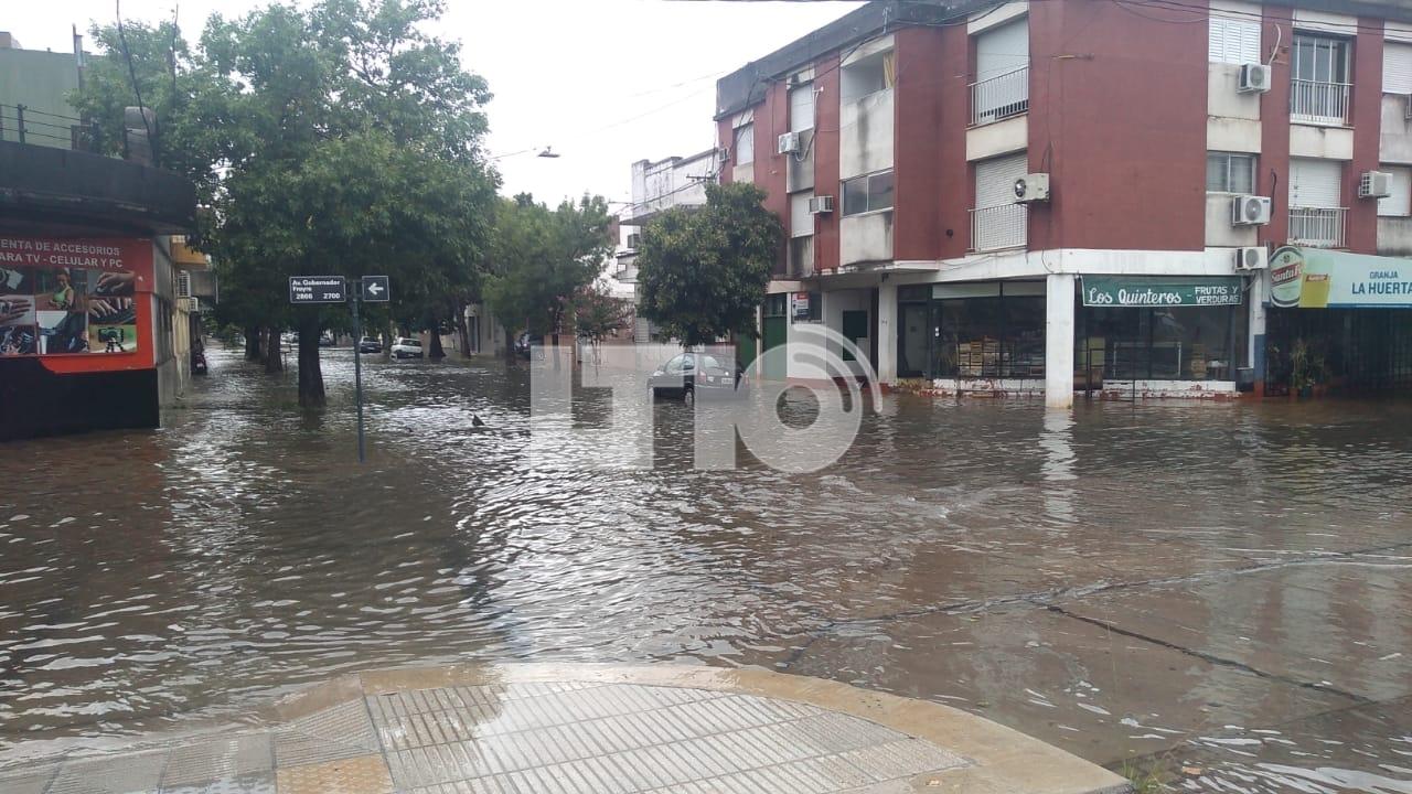 El Móvil de LT10 recorrió las calles y confirmó problemas en varios sectores de la ciudad por gran cantidad de agua acumulada en la bocacalles, como es el caso de la esquina de Catamarca y Avenida Freyre.