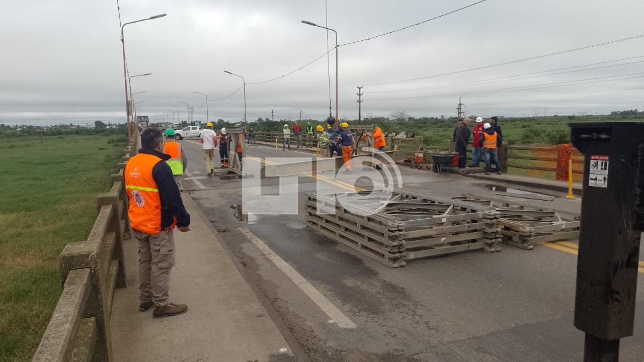 Este jueves, Vialidad Nacional comenzó el armado del puente metálico de emergencia sobre el Puente Carretero de RN 11. Las actividades se iniciaron con la movilización hasta la cabecera del lado Santa Fe de los equipos y elementos de la estructura del puente Bailey. Luego de apostada la maquinaria, en particular la grúa de gran porte, personal especializado de Vialidad Nacional iniciará el montaje de las piezas que componen el puente de metal.