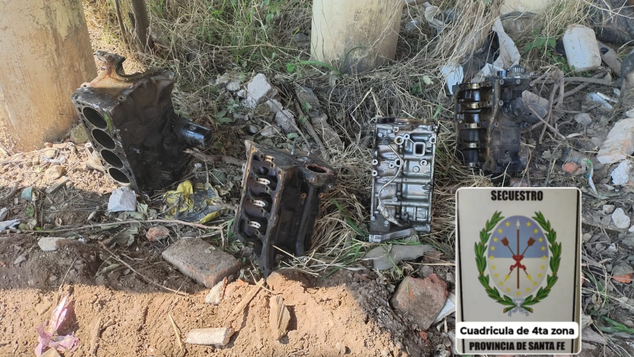 Durante un patrullaje para prevenir ilícitos, la policía encontró cuatro blocks de motores de autos debajo de un puente de la Autopista Santa Fe - Rosario.