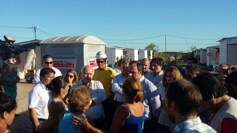 El gobernador Miguel Lifschitz y el intendente José Corral, recorrieron la obra de construcción de 15 nuevas viviendas de emergencia que el Gobierno de la Ciudad construye junto a la Asociación Civil “Un Techo para la Argentina” para el traslado de familias afectadas por la inundación.
