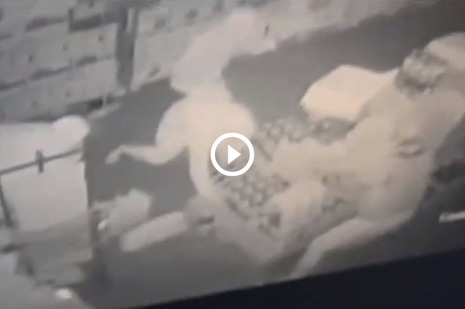 Las imágenes de una cámara de seguridad registró como un grupo de hombres y mujeres del barrio levantaron el portón de ingreso y se llevaron cajas de bebidas.