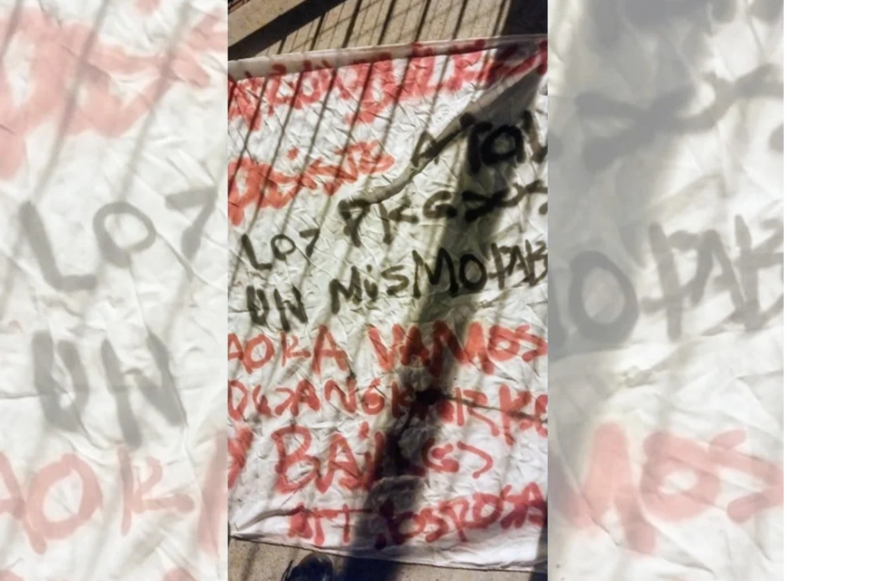 La tela escrita con pintura roja y negra apareció en un puente ubicado en Circunvalación entre Mendoza y Eva Perón.