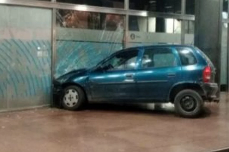En las imágenes viralizadas en redes sociales se observa al auto contra el vidriado, el cual casi se rompe, lo que podría haber provocado un desenlace peor.