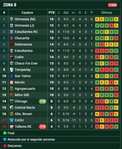 Con esta victoria, Chacarita superó a Colón en la tabla, mirá cómo quedó momentaneamente la Zona B:
