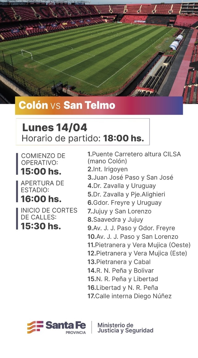 El operativo comenzará a las 15, los cortes de tránsito, a partir de las 15.30 y las puertas del estadio se abrirán, desde las 16. Tomá nota si sos de ir en las cercanía.
