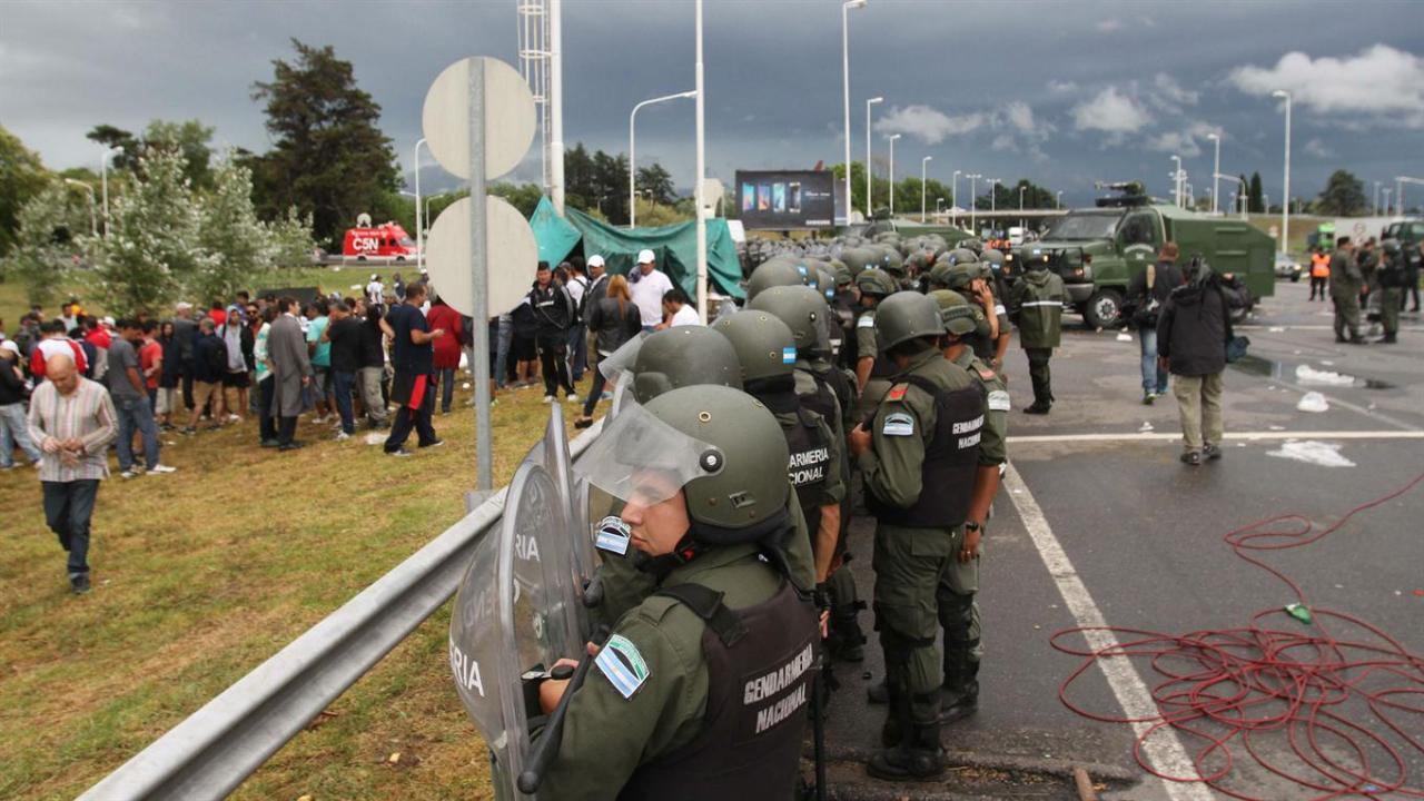 Antes de los incidentes, cuando llegaron nuevos manifestantes con banderas, Gendarmería los separó a un costado para revisar que no tengan elementos para agredir. Algunos de ellos quedaron bajo custodia de los efectivos y los delegados pidieron por su liberación. Allí, se inició la estampida que derivó en un feroz enfrentamiento donde hubo heridos de balas de goma.