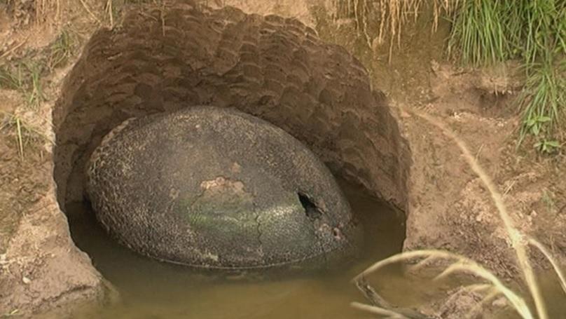 El arroyo había sido dragado por las autoridades para evitar inundaciones y por eso el caparazón salió a la luz. El gliptodonte era nativo de América del Sur y se extinguió en el período Cuaternario, aproximadamente hace 10 mil años. El mamífero medía dos metros de largo y pesaba 1,4 toneladas. Se cree que formaría parte de la familia de los actuales armadillos, de alimentación vegetariana.