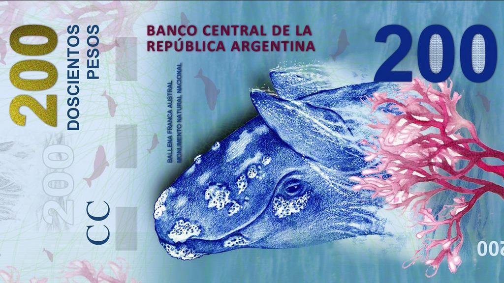 La ballena franca austral es el animal asignado para el de 200 pesos, representando a la región del Mar Argentino, Antártida e islas del Atlántico Sur. El billete de $1.000 contará con un horneno, que es el ave nacional, mientras que el de $500 tendrá el dibujo de Yaguareté.