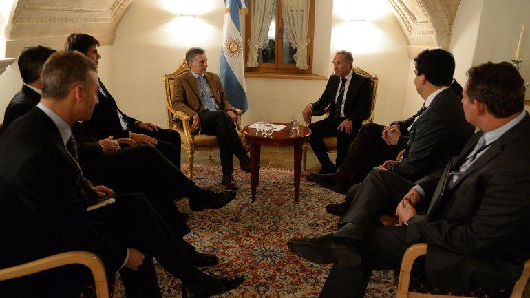 A continuación, el jefe de Estado, se reunió con Marcos Mindlin, miembro del directorio de Pampa Energía y uno de los empresarios argentinos que formó parte de la delegación. Mindlin le presentó a Macri un grupo de inversores interesados ante la nueva perspectiva de la Argentina.