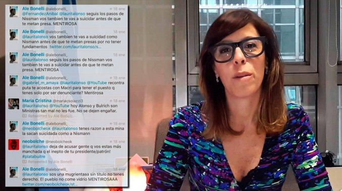 La denuncia quedó a cargo de la fiscalía de Martín Lapadú, y en ella se consignan una serie de "capturas de pantalla" sobre cuentas de Twitterque ya fueron borradas, pero cuya existencia quedó acreditada a través de las impresiones que presentó Alonso.