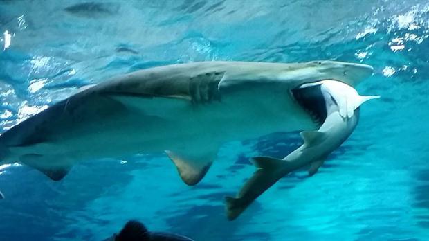 Si bien los animales están bien alimentados en el acuario, la hembra se animó a atacar al macho. Los encargados del acuario precisan que la hembra pudo haberse sentido atacada en su tanque, donde conviven otros 42 escualos.