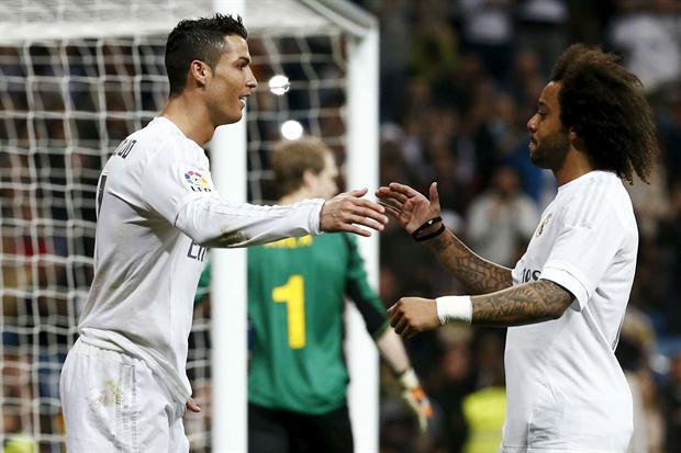 El francés Karim Benzema abrió el marcador en el minuto siete al rematar de cabeza un perfecto centro de James Rodríguez que, en ausencia del galés Gareth Bale, formó por segundo partido consecutivo en el once del técnico francés. Minutos más tarde, a los 15, el mediocampista colombiano reafirmó su intención de mantener la titularidad con un precioso gol desde el borde del área. Entre uno y otro gol, Cristiano Ronaldo anotó un penal que él mismo provocó. Y justo antes de encarar el entretiempo, el portugués firmó una espectacular jugada personal que, tras una veloz carrera y un par de gambetas, supuso el cuarto tanto blanco con un fantástico disparo.