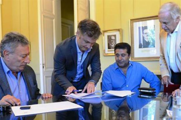 El acta acuerdo fue suscripta en la Casa de Gobierno por el secretario general de la Presidencia, Fernando de Andreis; el presidente de la AFA, Luis Segura; el secretario general de la entidad, Daniel Angelici, y el director de Fútbol para Todos, Fernando Marín.