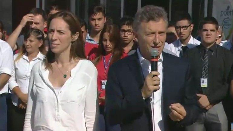 El mandatario, junto a la gobernadora bonaerense, María Eugenia Vidal, participó del anuncio en el supermercado ubicado en Eduardo Comesaña 4056, a pocas cuadras del Acceso Oeste, en el distrito comandado por el macrista Diego Valenzuela.