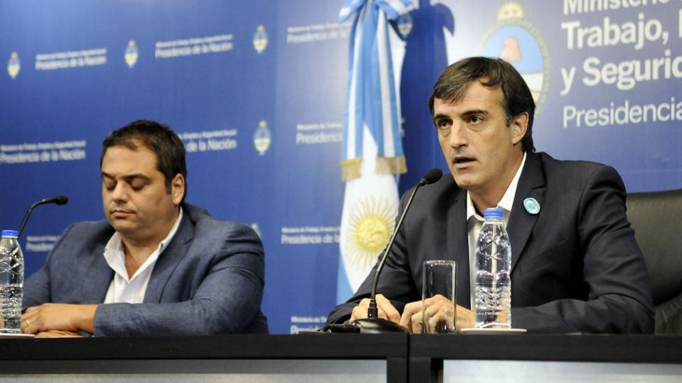 Los dos ministros brindaron una conferencia de prensa tras el encuentro para dar detalles del acuerdo. En cuanto al piso salarial, Bullrich informó que habrá un aumento en dos tramos: el primero llevará el mínimo a $7.800 en febrero, mientras que el segundo lo elevará a $8.500 en julio.