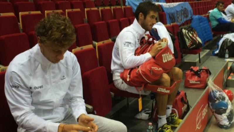 Más tarde, el primer singlista del representativo argentino, el correntino Leonardo Mayer (41), realizó su práctica ante Renzo Olivo (167) sobre la superficie de "rebound ace" del Ergo Arena, que el domingo por la noche alojó un encuentro de la Liga femenina de voleibol local, y este lunes por la mañana ya estaba disponible para la serie de Copa Davis.