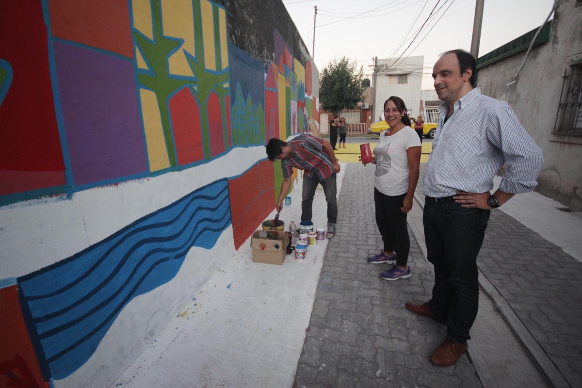 En el Pasaje Mantovani de barrio Del Tránsito se vivió una verdadera fiesta: hasta el lugar se acercó el intendente José Corral este viernes por la tarde para celebrar junto a los vecinos la inauguración oficial de obras de cordón cuneta y pavimento articulado que se llevaron a cabo en la cuadra ubicada entre Chiclana e Ignacio Crespo. En la jornada, que estuvo animada por Gustavo “Tuti” Núñez, los artistas locales Emiliano Quintana, Natalí Solis y Florencia Secchini le pusieron color a las paredes del pasaje con un mural que pintaron en el marco del Programa Intervenciones Artísticas Urbanas dependiente de la Secretaría de Cultura del Gobierno de la Ciudad.