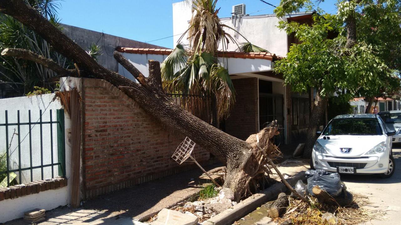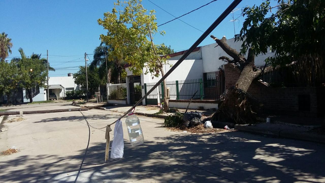 En diálogo con LT10, Estela, vecina de Pasaje Bariloche al 3800, contó que “la tormenta nos tiró un poste de la luz y un árbol. Aún no vino nadie a sacar este poste que está cortando la calle”.