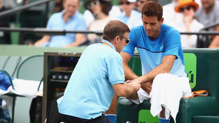Del Potro sufrió molestias en la muñeca izquierda y en la rodilla derecha, que lo forzaron a pedir atención médica durante el encuentro con Zeballos. Este era su segundo partido en Miami ya que había debutado con un triunfo ante Guido Pella.