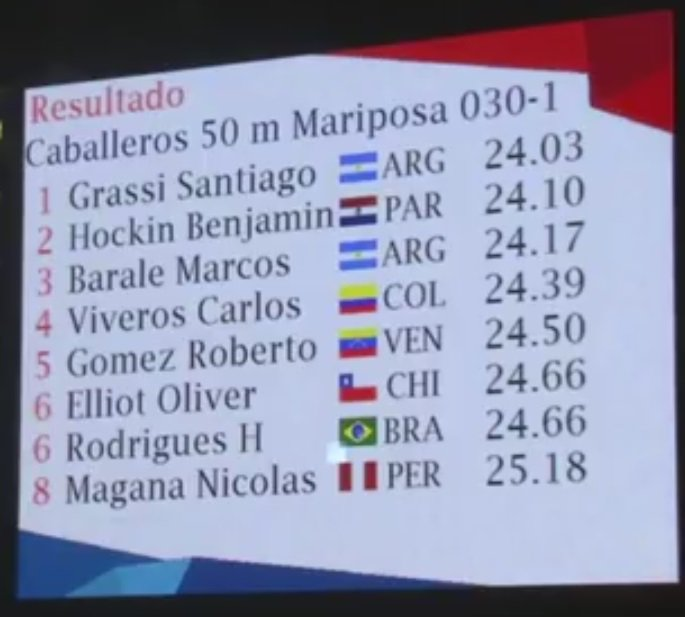 Recordamos que Grassi tiene como mejor registro en los 50 metros mariposa 23”90 que es récord argentino conseguido el 10 de abril del año pasado en una toma de tiempo oficial en el María Lenk en Río de Janeiro.