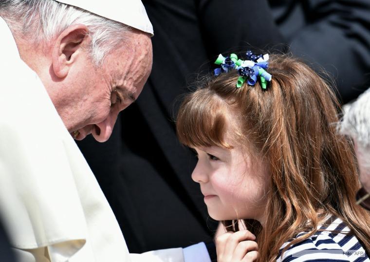 Tras la audiencia general, el pontífice saludó en Plaza San Pedro a Elizabeth "Lizzy" Myers, que concurrió con un vestido a rayas y una muñeca en sus manos junto a sus padres y su hermana menor.