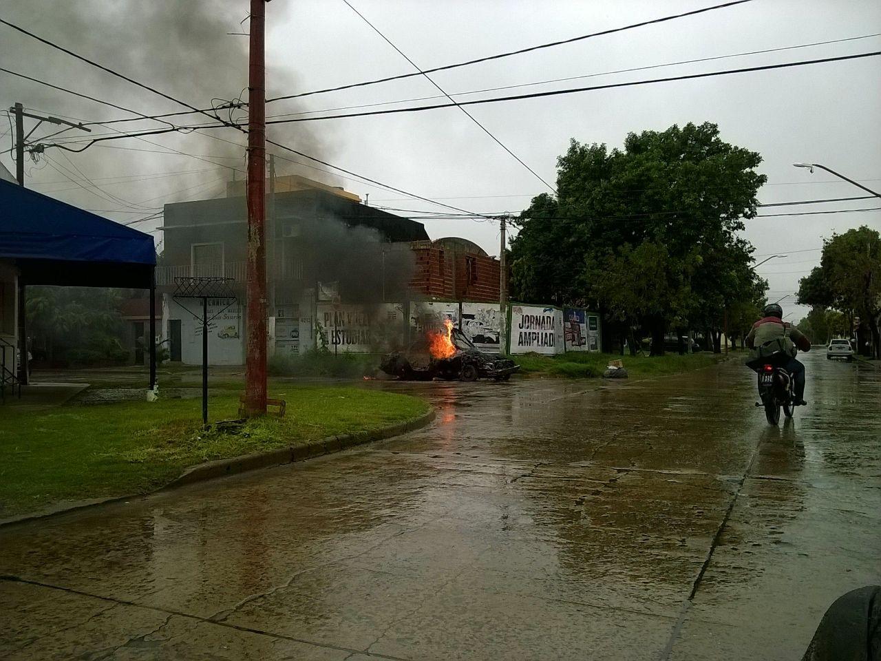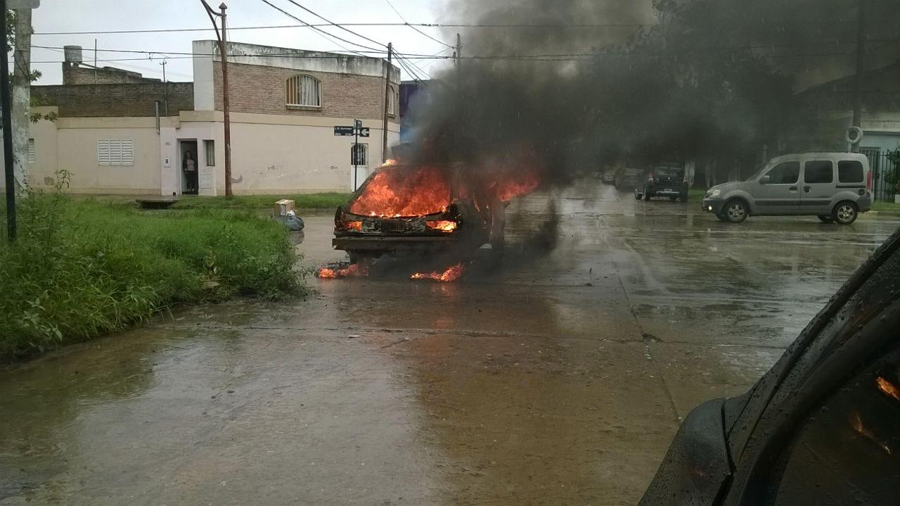 Alrededor de las 14:30 de este lunes, un Ford Sierra color azul ardió en llamas en inmediaciones de Iturraspe y Urquiza, en barrio Pro Adelanto Barranquitas.
