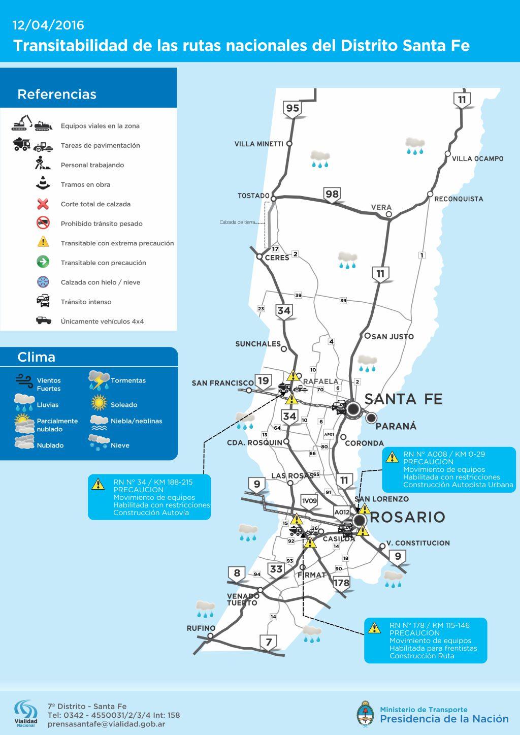 En lo referente a las vías nacionales, Vialidad suministró un mapa de su situación (ver).