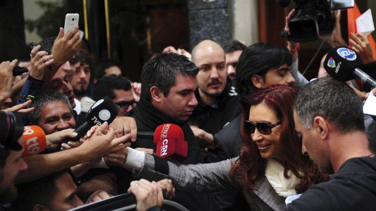 Minutos después de las 14 y vitoreada por unos 20 militantes, la ex presidente Cristina Kirchnerdejó su domicilio de Juncal y Uruguay, en Recoleta, a bordo de un Chevrolet Prisma color blanco. Sonriente, la ex jefa de Estado retribuyó los saludos, pero no realizó declaraciones.