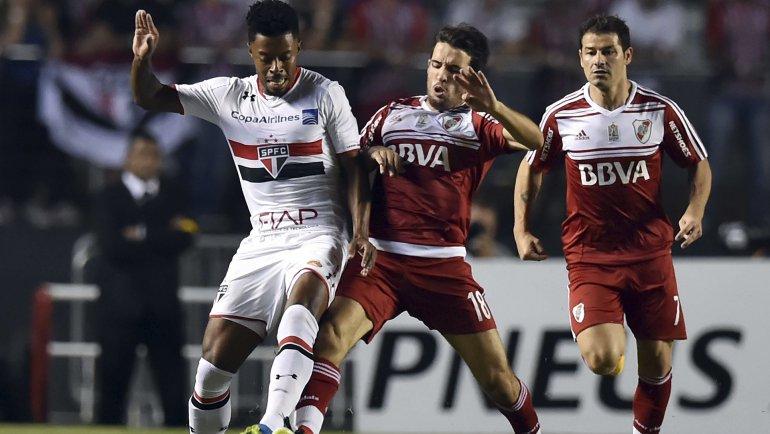 El primer tiempo mostró nuevamente a un River deslucido en el juego, más similar a la versión que se viene viendo en el certamen doméstico que el que se destacó en la Copa. San Pablo, obligado a ir por el triunfo, por ser local y para acercarse a la clasificación, fue algo más, aún sin ser demasiado profundo en sus incursiones en ataque.