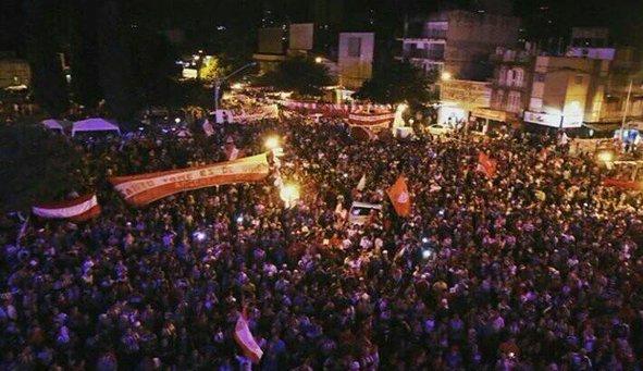 Hubo cánticos, banderas y un cierre con alrededor de diez minutos de fuegos artificiales que le dieron calor a la noche santafesina.