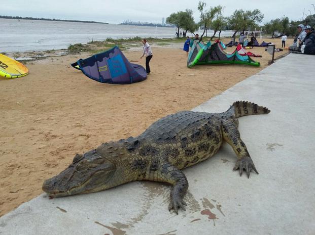 Un yacaré de casi dos metros de largo apareció sorpresivamente en la Rambla Catalunya y, luego de varios minutos de tensión en la zona, un grupo de pescadores se lo llevó para comérselo, según reveló un guardavidas que trabaja en la zona. El hecho ocurrió cerca de las 16, cuando unos jóvenes que hacían kitesurfing vieron al animal “moribundo”.