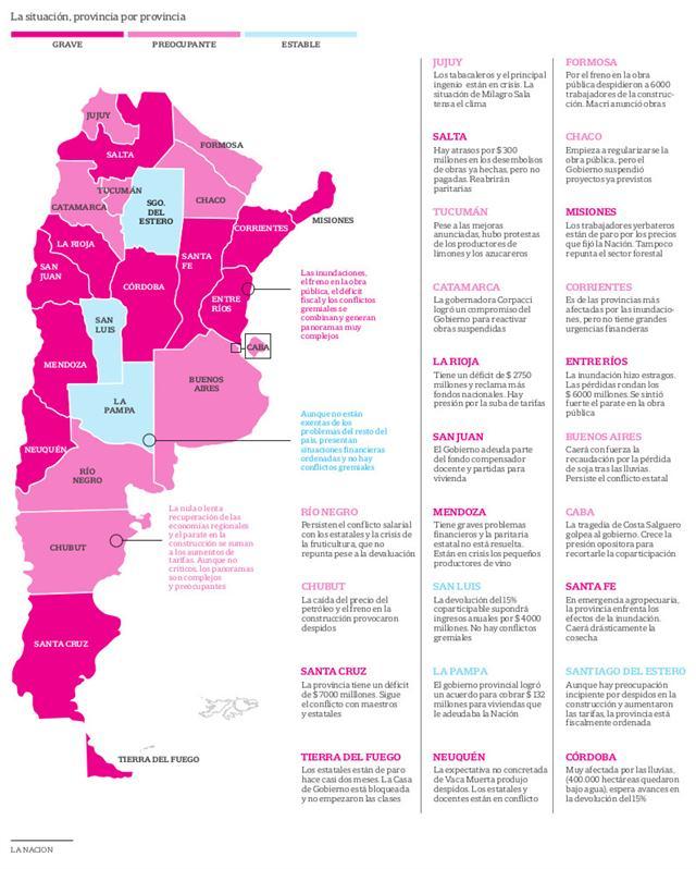 La alternativa de tomar crédito, en moneda extranjera o local, como siempre debe contar con autorización de las legislaturas. En una señal de ida y vuelta, más de una vez tuvo que meter la mano el Gobierno para allanar el camino en distritos del PJ. Lo sabe el chaqueño Domingo Peppo, que transpiró largo rato hasta que le aprobaran el miércoles pasado un proyecto de ley que lo habilita a endeudarse por 4000 millones de pesos. Debió interceder el ministro del Interior, Rogelio Frigerio, para que los radicales aseguraran la "gobernabilidad" que el macrismo pide a nivel nacional. Esa plata será para sostener la construcción y pagar un juicio millonario a empleados judiciales.