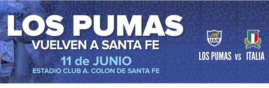 Este jueves a las 12 en la Sala Auditorio de Casa de Gobierno (3 de febrero 2649) se realizará el lanzamiento del test match internacional Los Pumas - Italia que se jugará el 11/6 en el estadio del Club Colón. En la conferencia de prensa estarán presentes Carlos Araujo y Jorge Bruzzone, presidentes de la Unión Argentina y Santafesina respectivamente. Además habrá representantes del gobierno provincial.