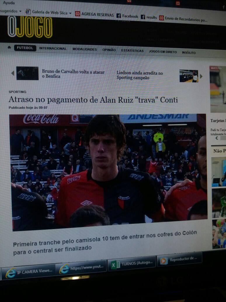 El periódico de Portugal OJOGO refleja este jueves en su edición digital una supuesta "trava" (portugues) entre Sporting de Lisboa y Colón en las negociaciones de transferencia de GERMÁN CONTI, debido a un presunto atraso del primer pago de la venta de Alan Ruiz.