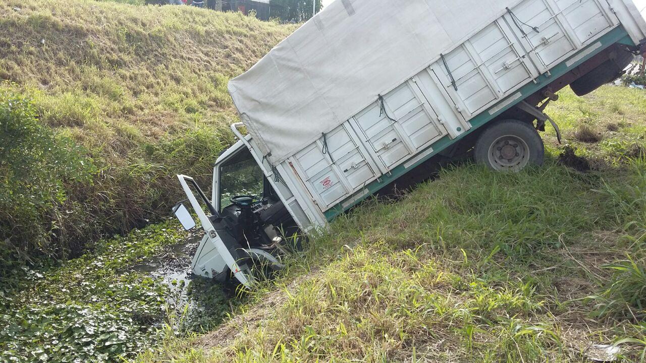 En diálogo con LT10, Ramón, expresó que “agarré un pozo, se me rompió la dirección, se me descontroló el camión y terminé en una zanja. En este momento venía sin carga. Un muchacho de Vialidad vio todo”.