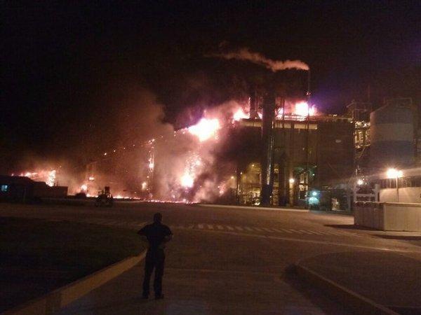 Un importante incendio se inició este sábado a la noche en un sector de la planta Celulosa de Capitán Bermúdez.