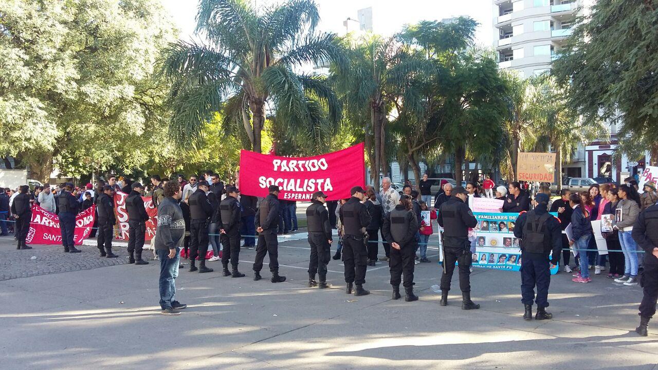 Distintas organizaciones políticas y sociales estuvieron presentes en la explanada de la Legislatura santafesina para escuchar el discurso del gobernador, Miguel Lifschitz.