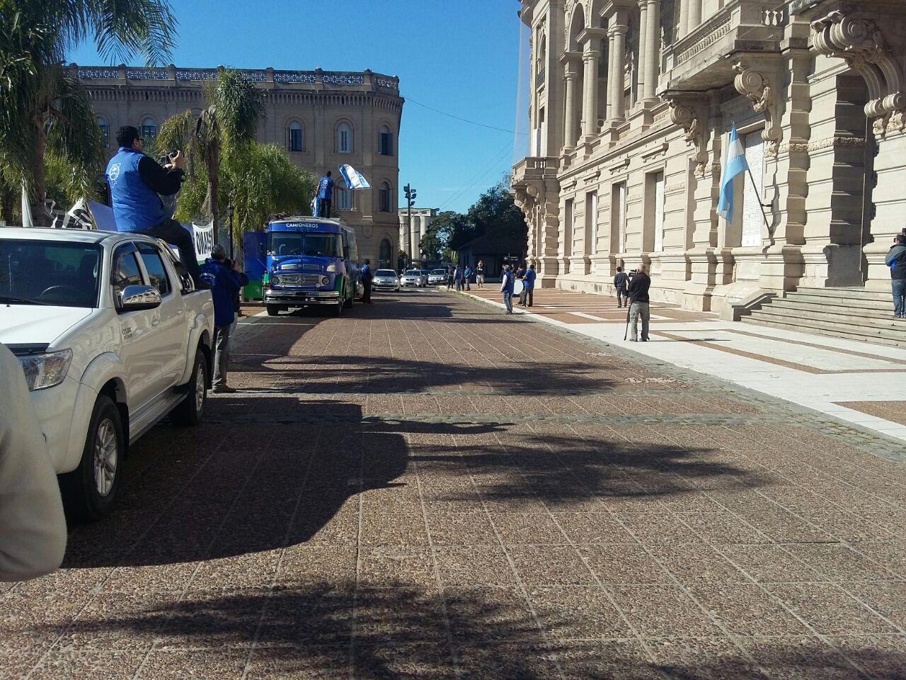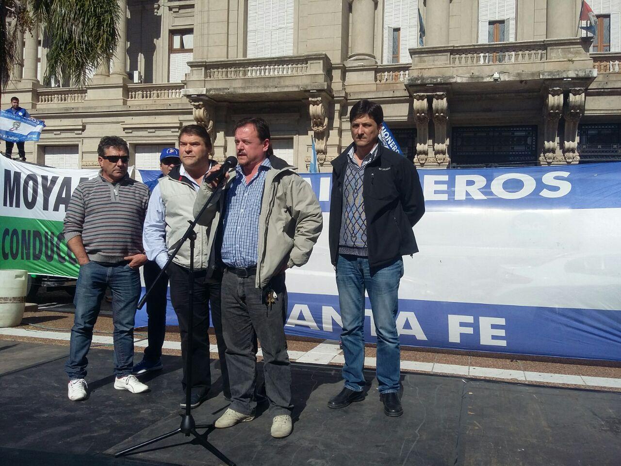 En la ocasión, sindicalistas realizaron un pequeño acto público para expresar su preocupación. En diálogo con la prensa, Sergio Aladio, secretario general de Camioneros Santa Fe, aseguró que están “padeciendo procedimientos de crisis, suspensiones y adelantamiento de vacaciones”.