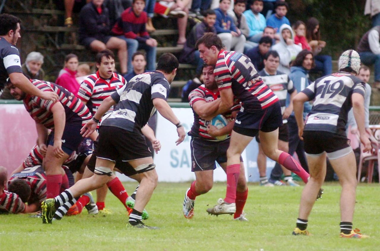 SFRC estaba como perdido en el campo de juego, sin reacción, y para colmo de males sufrió una baja importante, cuando el wing Monasterolo quedó tendido en el piso tras un rodillazo sin intención de un rival cuando saltó en el line out. El árbitro De Feo lo atendió inmediatamente, el back debió ser retirado por una ambulancia, y en su lugar ingresó Nicolás De Biaggio. Al descanso se fue ganando Alma Juniors por 13-9, producto de haber sabido aprovechar la gran cantidad de infracciones del conjunto dueño de casa.