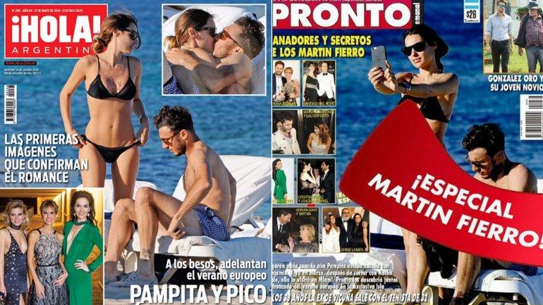 "Pampita y Pico Mónaco en Ibiza. A los besos, adelantan el verano europeo", tituló la revista Hola en su nueva portada de esta semana con las primeras imágenes de la pareja besándose de manera apasionada. Además, en la tapa ella se destaca al lucir su figura esbelta con una sensual bikini negra.