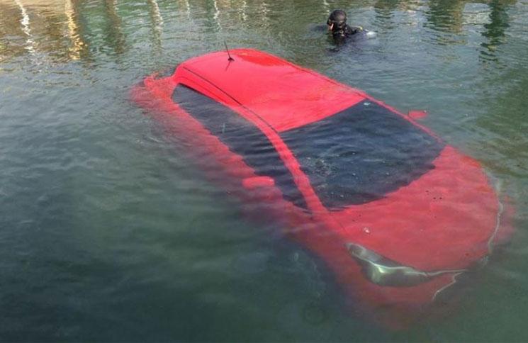 Por suerte, la conductora pudo escapar del auto. Recién al día siguiente pudieron sacar al vehículo del agua.