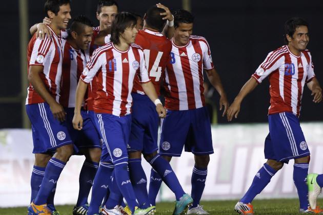 Paraguay: Justo Villar; Bruno Valdez, Paulo Da Silva, Gustavo Gómez y Miguel Samudio; Derlis González, Roberto Piris, Celso Ortiz y Oscar Romero; Jorge Benítez y Darío Lezcano. DT: Ramón Ángel Díaz.