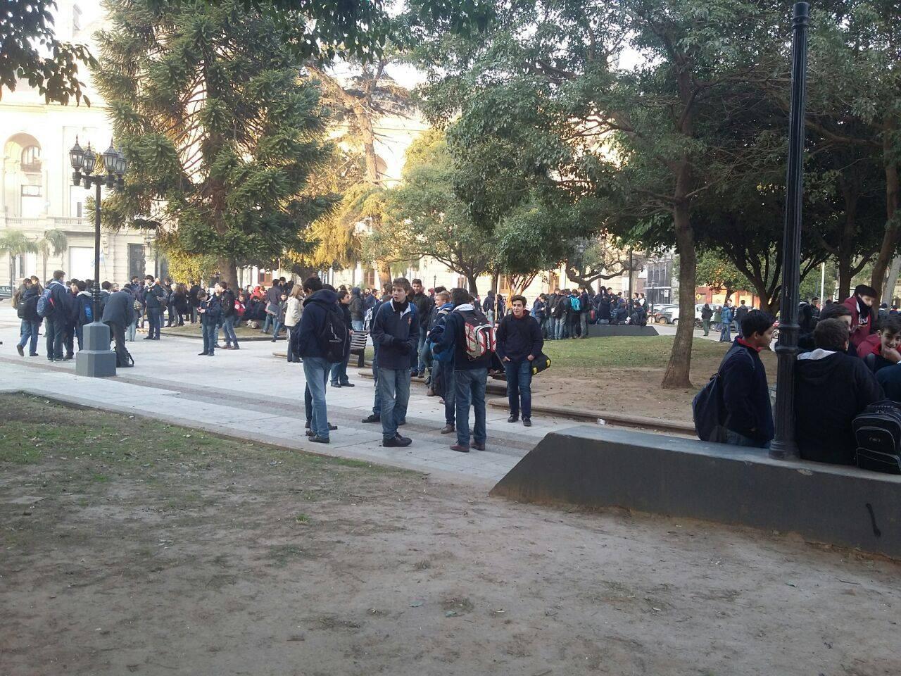 Directores y alumnos de los tres niveles de la institución debieron evacuarse a Plaza de Mayo.